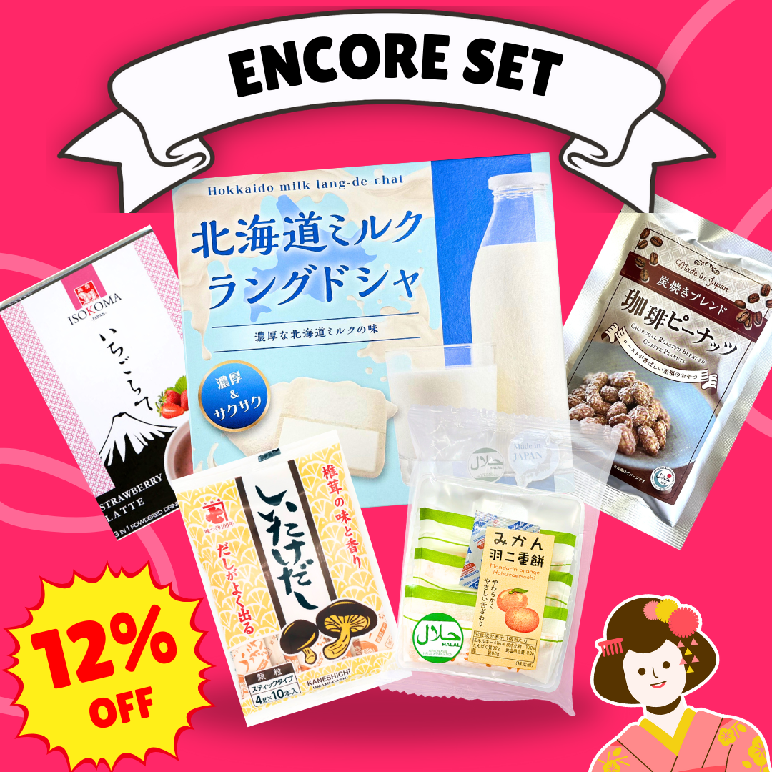 Introducing our Encore Set — a special, extended version of last month’s Monthly Discovery Set: a beloved mix of Halal-certified and Muslim-friendly Japanese snacks and drinks… and kept it going just a little longer!
