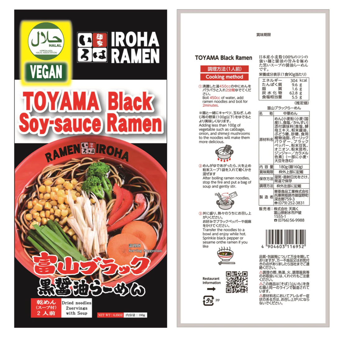 This is the Halal-certified and Vegan-friendly version of the famous Toyama Black Ramen, a beloved dish from Toyama Prefecture known for its rich, soy sauce-based black broth and chewy noodles.